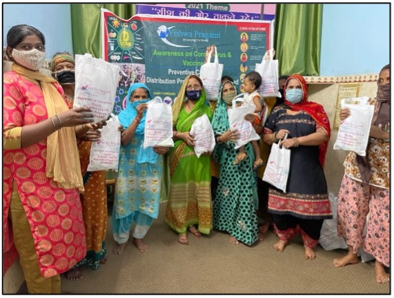 To combat the potential threat of the third Covid pandemic, Vishwa Pragami Trust has conducted Covid Prevention and Vaccine Awareness Programs and distributed free preventive medical care kits to the needy people residing in different parts of the Telangana state (Hyderabad and combined Warangal), Mumbai Dharavi Slum (Maharashtra) and Delhi. A local doctor/ health worker(s) invited to bring awareness and then distributed the Covid preventive care kits during these programs.